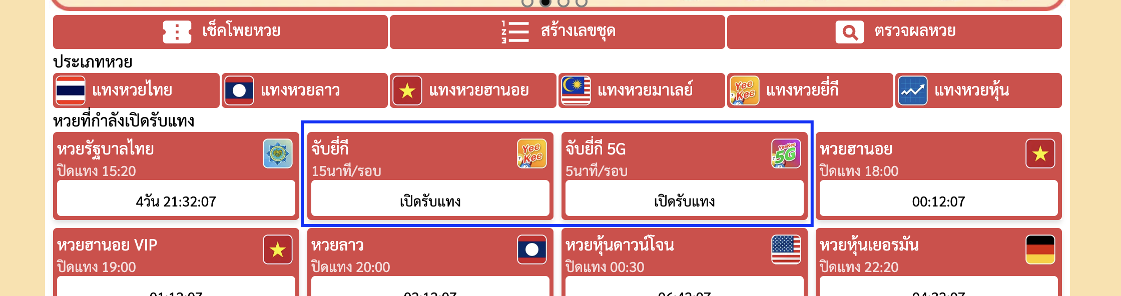 - หวยจับยี่กี ธรรมดา รอบละ 15 นาที ส่วน หวยจับยี่กี 5G รอบละ 5 นาที