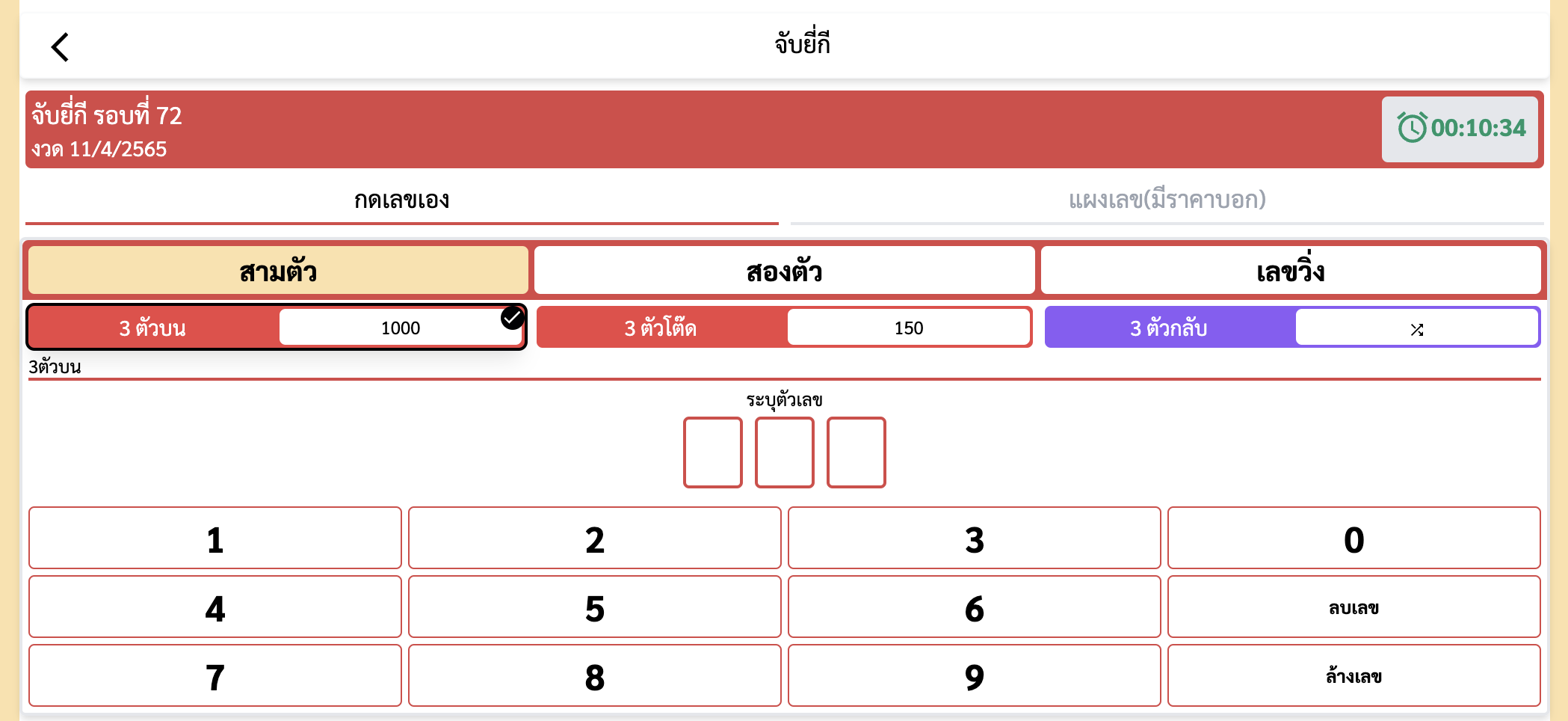 ให้ไปที่ กงล้อ 888 หน้า dashboard > จับยี่กี > เลือกรอบ >ใส่ราคา