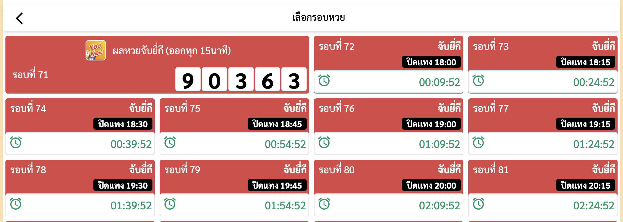 - หวยจับยี่กี ธรรมดา รอบละ 15 นาที ส่วน หวยจับยี่กี 5G รอบละ 5 นาที
